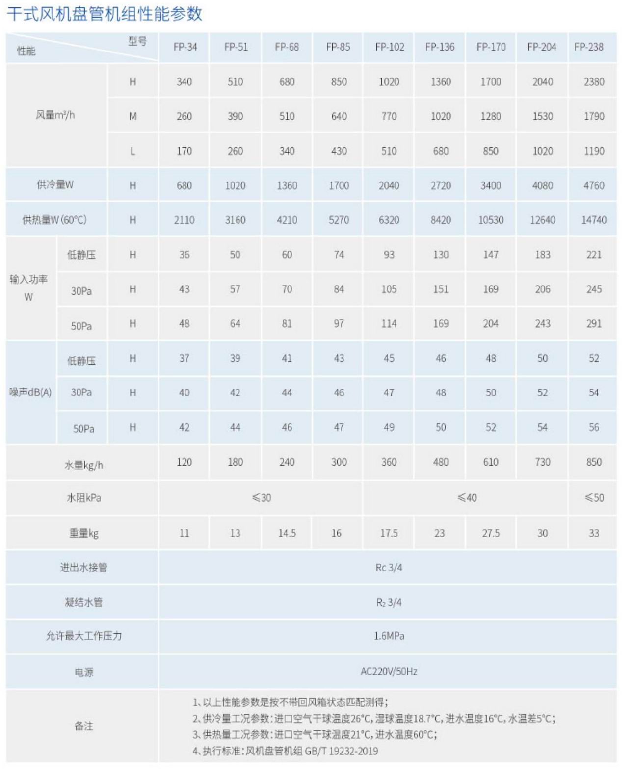 干式風機盤管參數樣冊