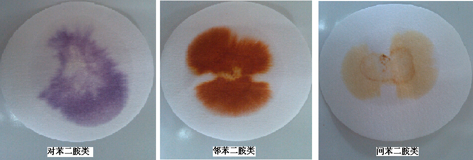 若3分鐘內(nèi)濾紙顯紫色,則判定樣品中可能含有對苯二胺化學(xué)成分;若3分鐘內(nèi)濾紙顯橙紅色或黃色系列顏色,則判定樣品中可能含有鄰苯二胺或間苯二胺化學(xué)成分。